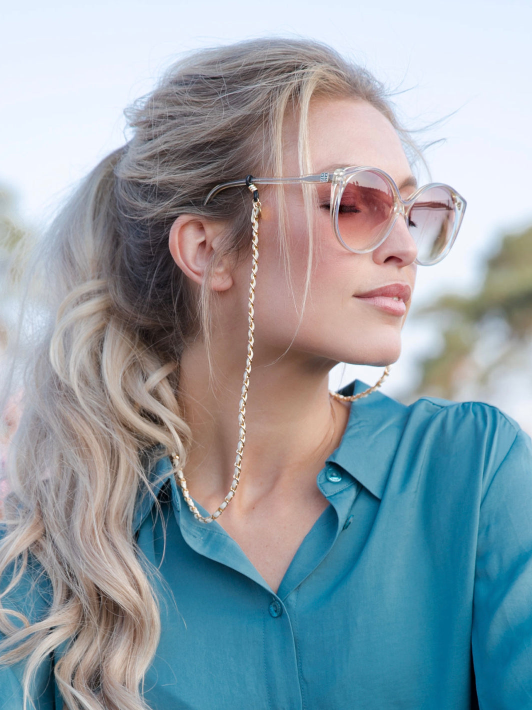 After the success of black Classy-C, we now have a brand new variant: Summer White! This sunglass chain is sure to give your look that sophisticated, effortless finish. We think Coco would approve this trendy sunny gold chain! Good news because more variants are available. Click here