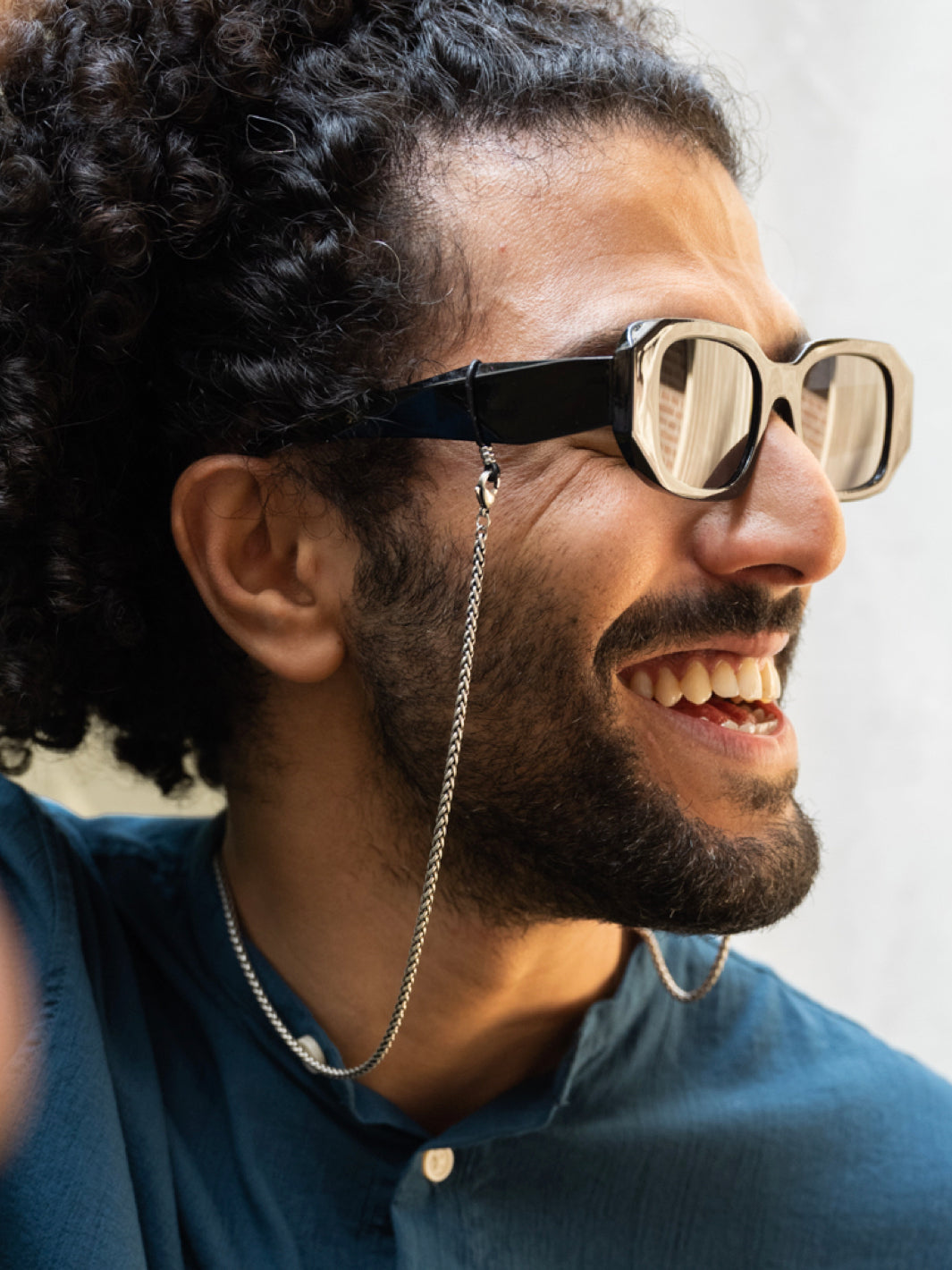 Let us introduce you to the silver glasses chain called Noah. This tough looking glass chain adds the added touch of class to your outfit. With this round laced Sunny Cord, we were inspired by the silver trend, who made a return. With this Noah glasses chain you choose for an edgy and fashionable look. Looking for something a bit more subtle? Then do not miss out on taking a closer look at the Otis glass chain.