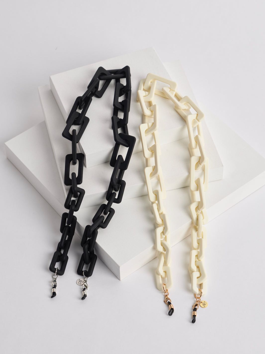 Finally our large chunky chain is here and made it the collection, the Vanta. This sunglass chain is stunning design which was requested by many of you. Vanta refers to pitch-black color and the name has inspired us to create this bold Sunny Cord. We couldn’t resist to also create a light, more natural color variant and therefore introduce you the Vanta Beige. Do dare to steal the show with the Vanta?
