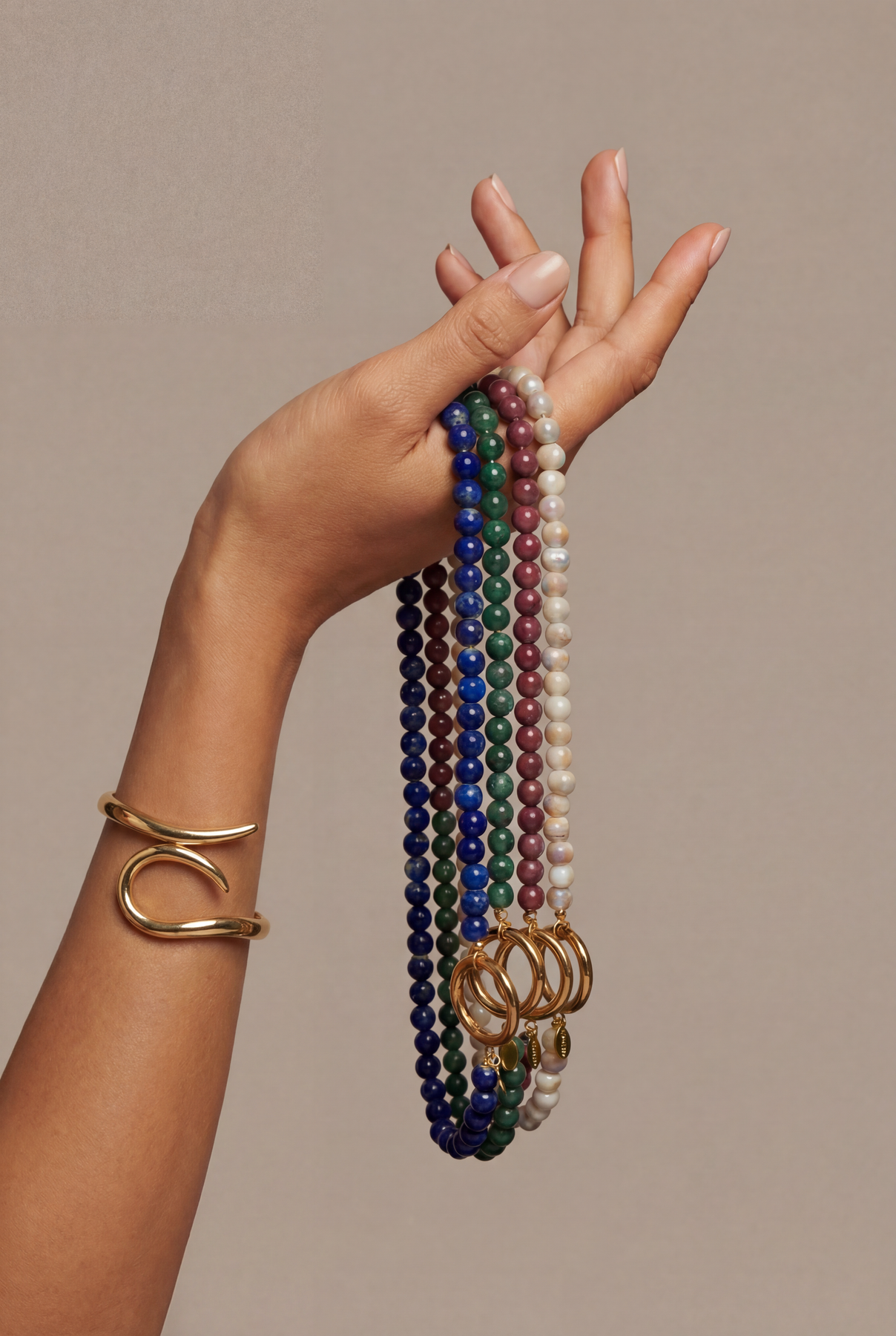 ✓ Green ceramic beads with 18K gold-plated stainless steel ring