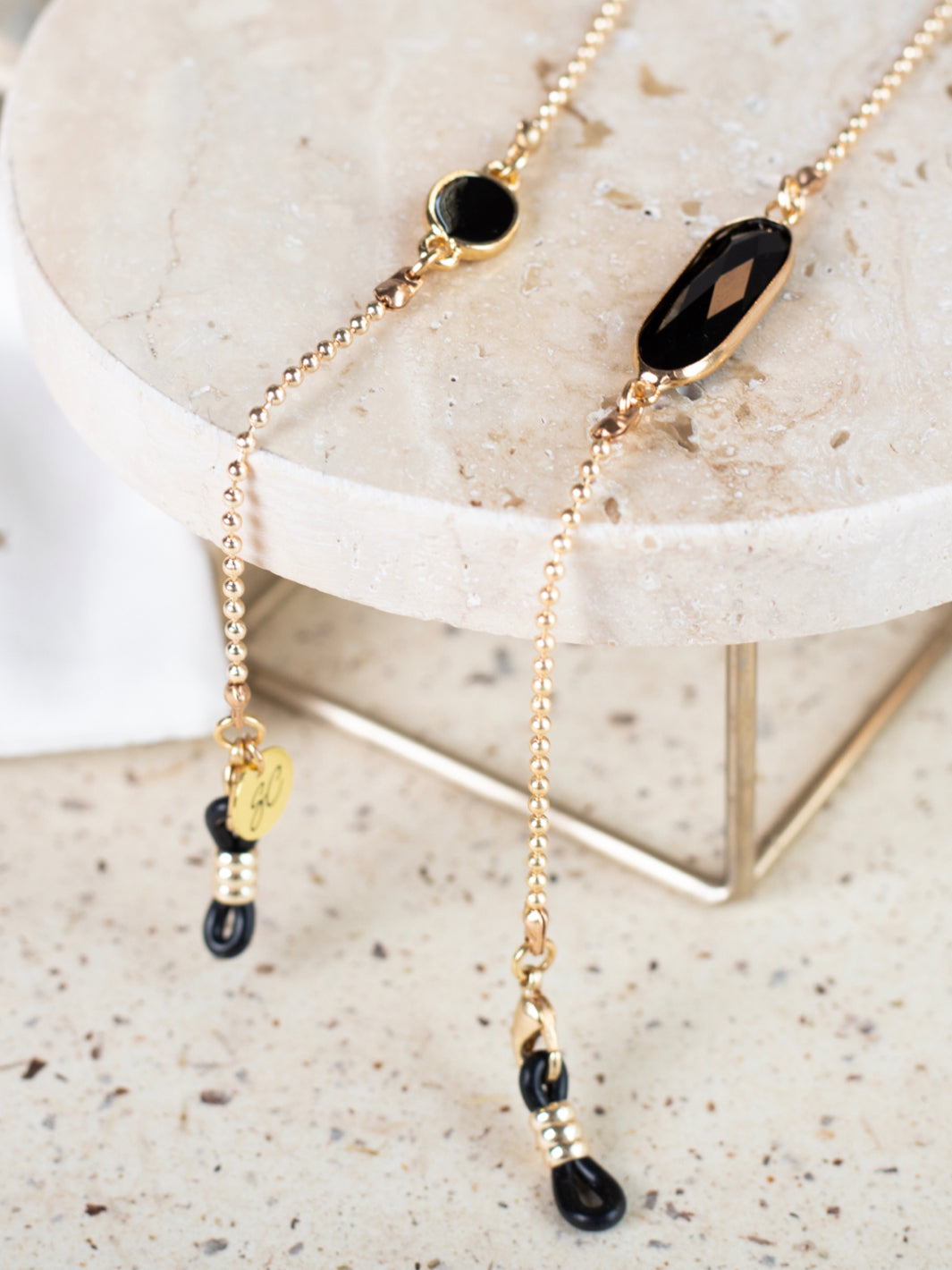 Gold - Black Crystal C Black | Eye Glasses Chain