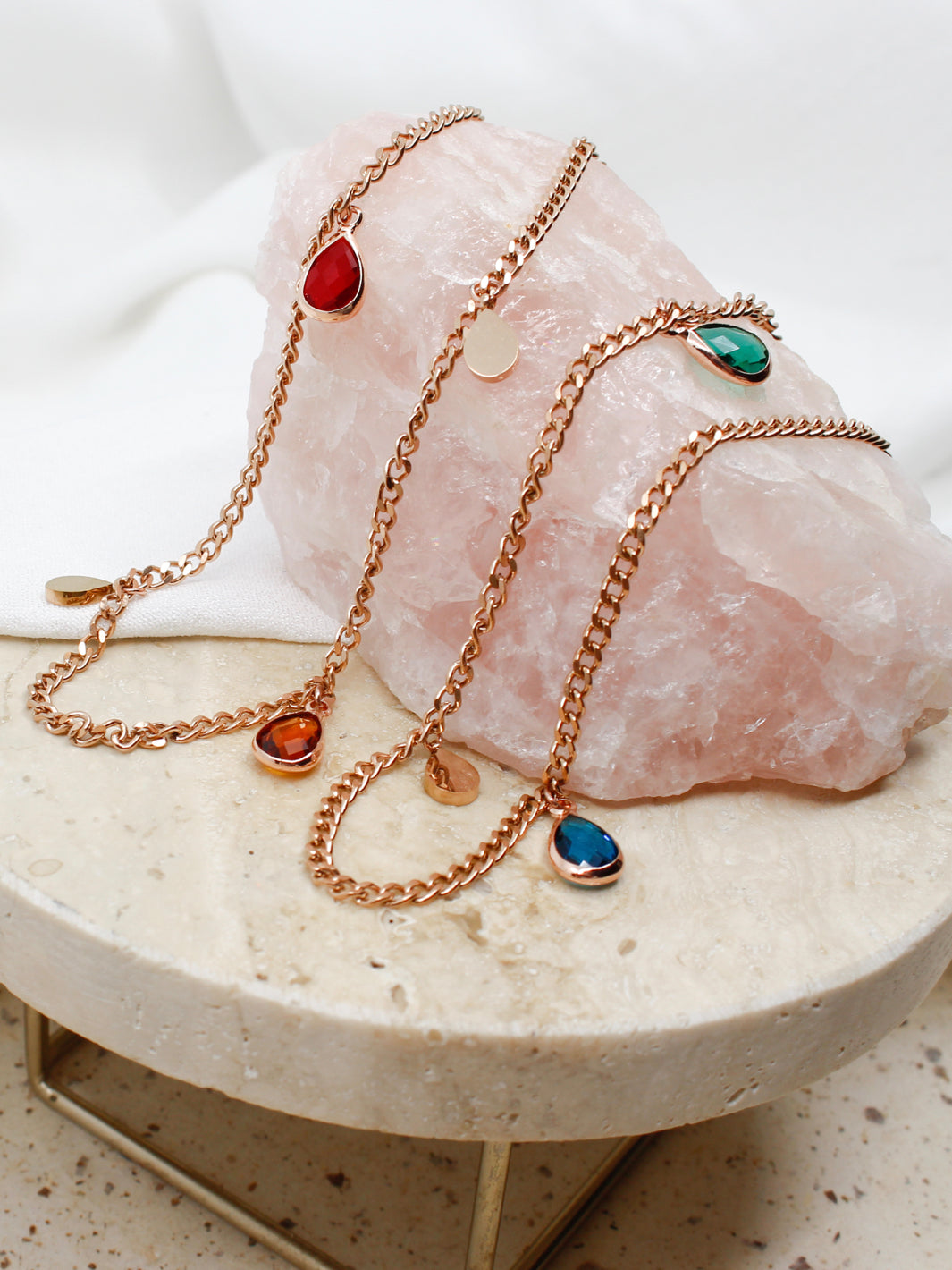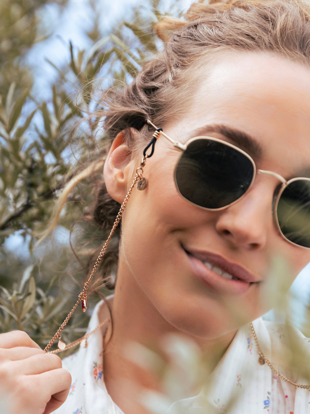 The Ella sunglasses chain is subtle and elegant. This stainless steel chain is available in three different colours; gold, silver and rose gold. The sunny cord has transparent sparkling stones in different colours, so there is always a colour that matches your outfit.