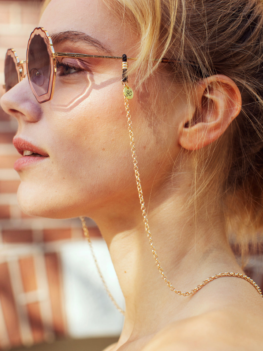 The Georgi gold sunglasses chain is for those who are effortlessly classy while having that extra dollop of charm. These lovelies feature a pretty gold chain with a circular filigree charm on the end with a beige pastel circle charm. The perfect Sunny Cord for sporting on a yacht or for a brunch!